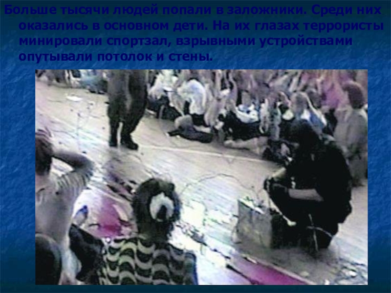 дети. На их глазах террористы минировали спортзал, взрывными устройствами опутывали потолок и стены.