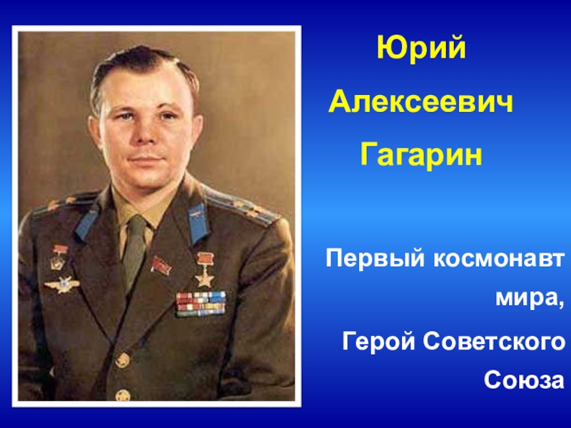 ЮрийАлексеевичГагарин Первый космонавт мира,Герой Советского Союза