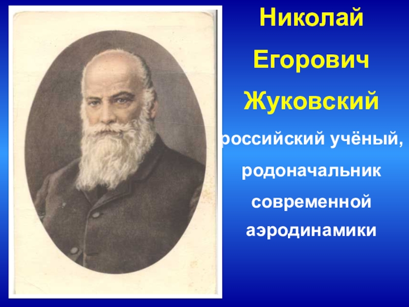 Николай ЕгоровичЖуковский российский учёный,родоначальниксовременной аэродинамики