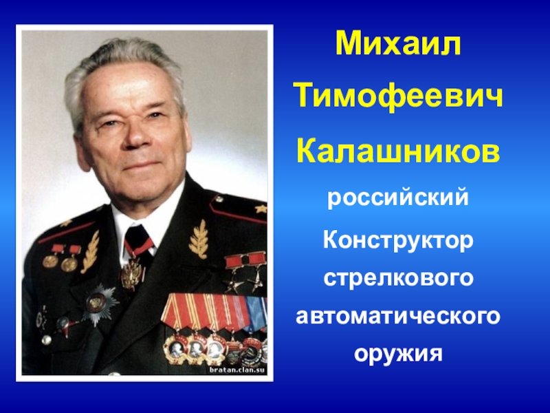 Михаил ТимофеевичКалашников российскийКонструктор стрелкового автоматического оружия
