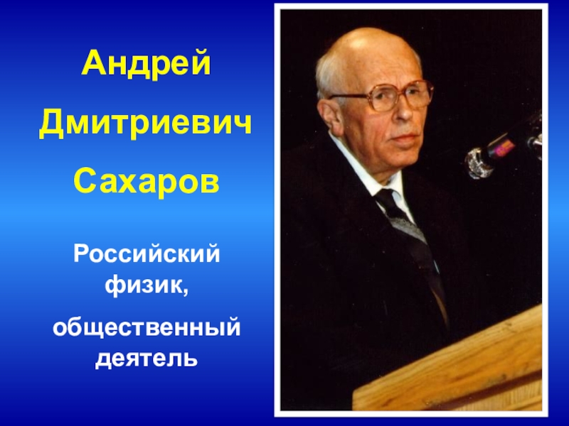 АндрейДмитриевичСахаров Российский физик,общественный деятель