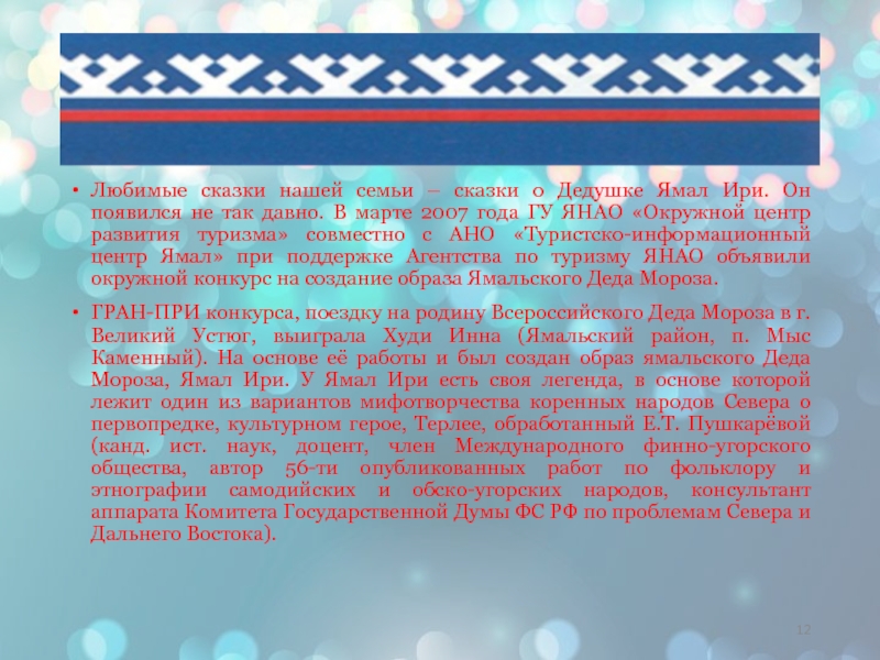 Слайд 12Любимые сказки нашей семьи – сказки о Дедушке Ямал Ири. Он