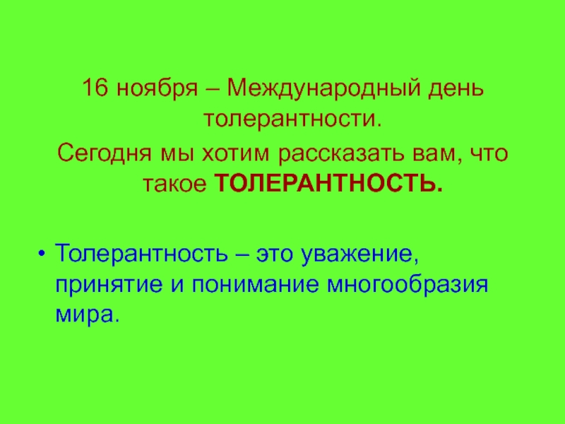 Толерантность – это уважение, принятие и понимание многообразия мира.