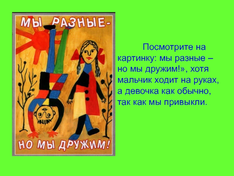 но мы дружим!», хотя мальчик ходит на руках, а девочка как обычно, так как мы привыкли.