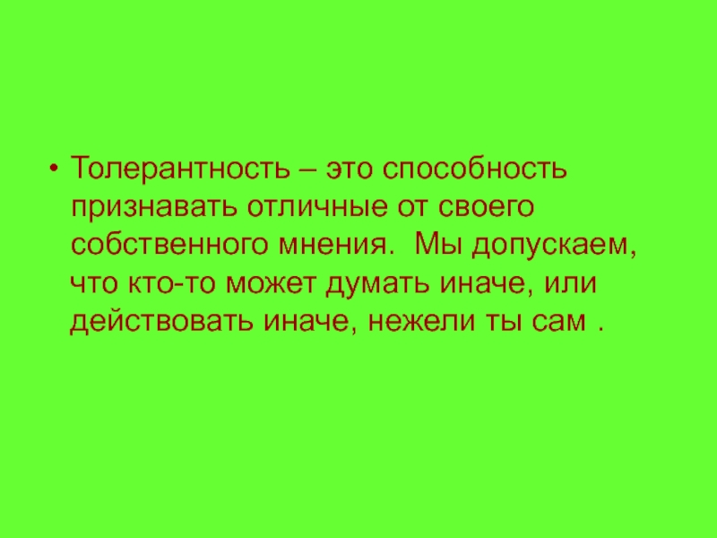 Слайд 6Толерантность – это способность признавать отличные от своего собственного мнения. Мы
