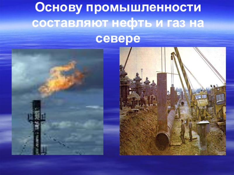 Слайд 19Основу промышленности составляют нефть и газ на севере
