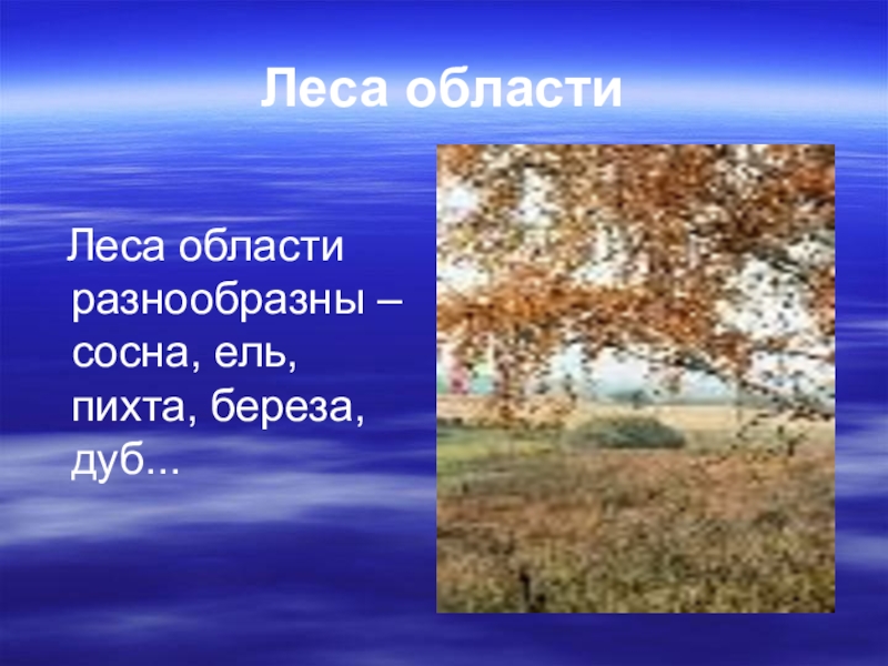 Леса области    Леса области разнообразны – сосна, ель, пихта, береза, дуб...