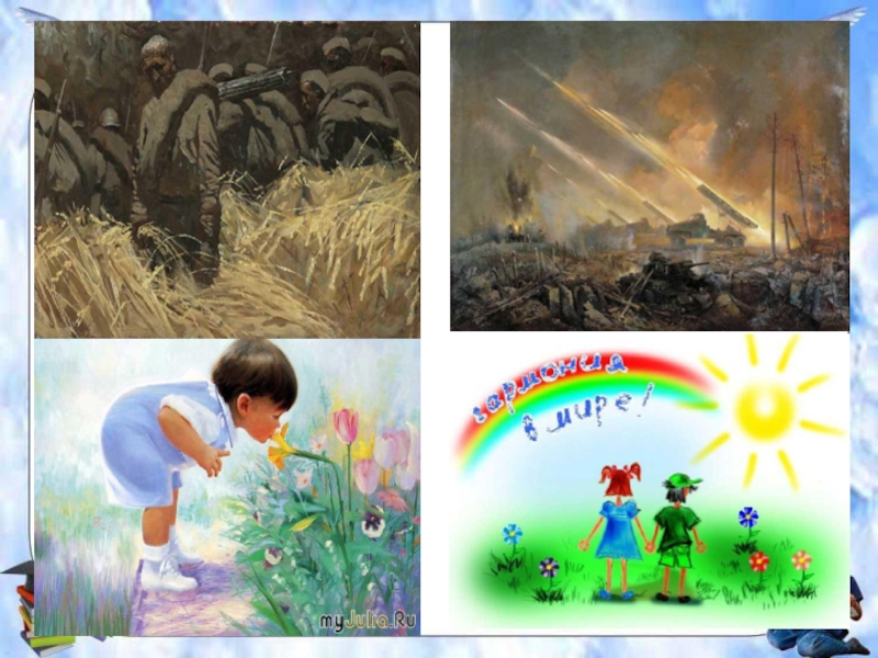 Мир во всем мире – мечта моя,Пусть люди живут, как одна семья.Пусть больше не будет войн и