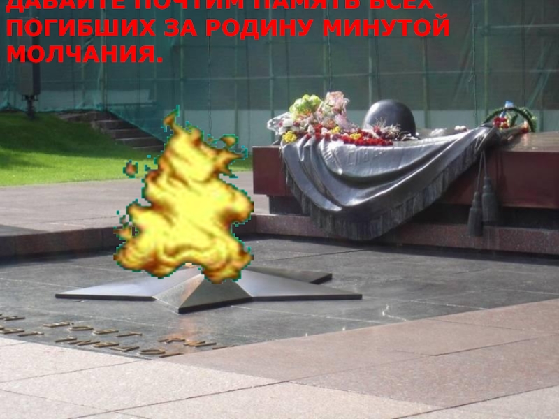 ДАВАЙТЕ ПОЧТИМ ПАМЯТЬ ВСЕХ ПОГИБШИХ ЗА РОДИНУ МИНУТОЙ МОЛЧАНИЯ.