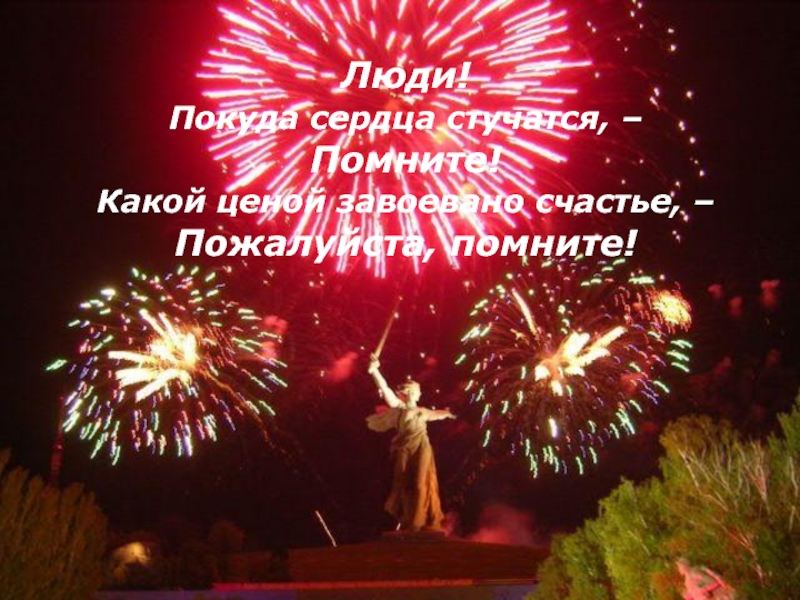 Люди!Покуда сердца стучатся, – Помните!Какой ценой завоевано счастье, – Пожалуйста, помните!