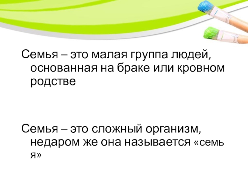 Слайд 4Семья – это малая группа людей, основанная на браке или кровном