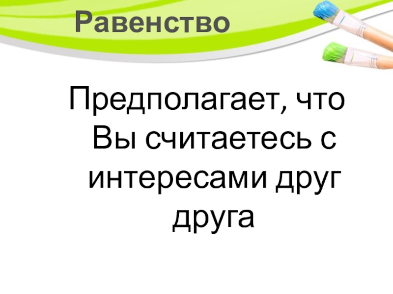 РавенствоПредполагает, что Вы считаетесь с интересами друг друга