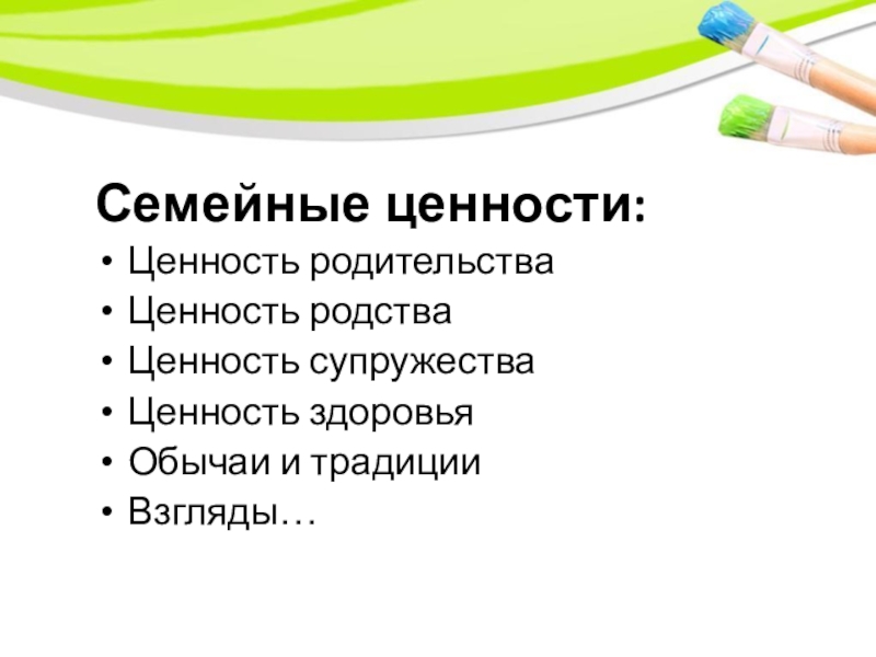 Слайд 6Семейные ценности: