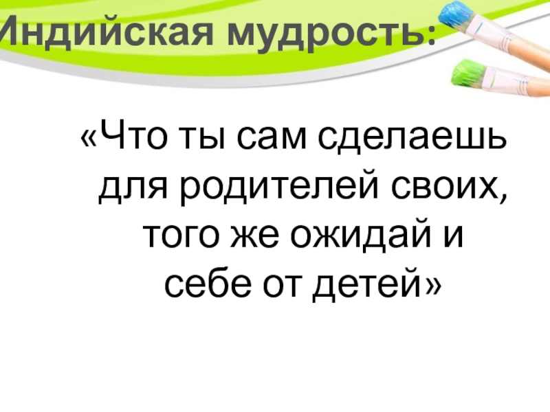 Индийская мудрость:«Что ты сам сделаешь для родителей своих, того же ожидай и себе от детей»