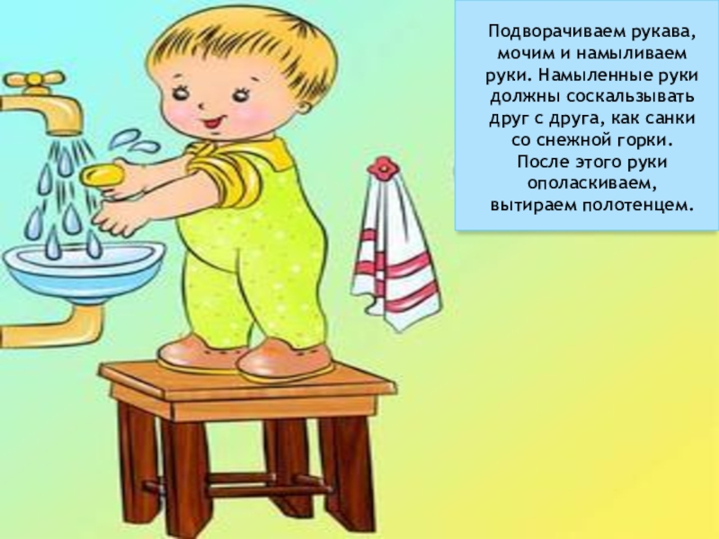 с друга, как санки со снежной горки. После этого руки ополаскиваем, вытираем полотенцем.