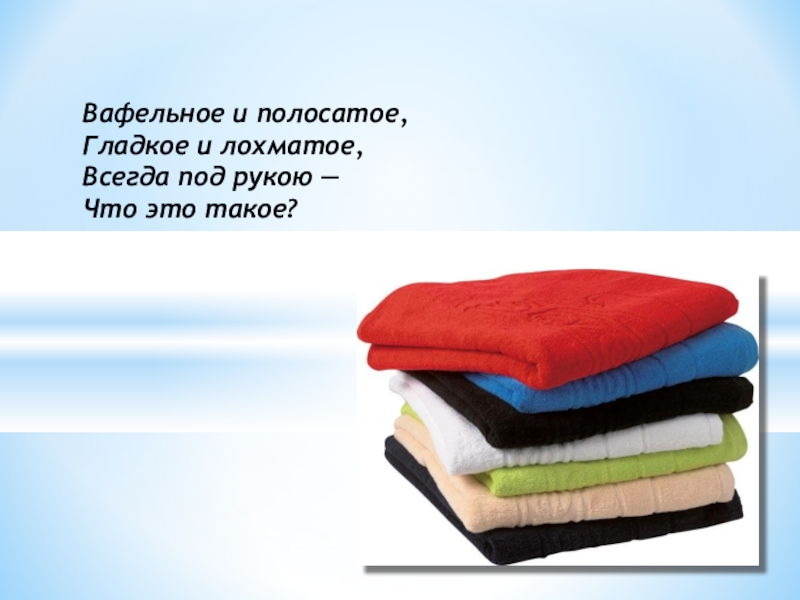 Вафельное и полосатое, Гладкое и лохматое, Всегда под рукою — Что это такое?