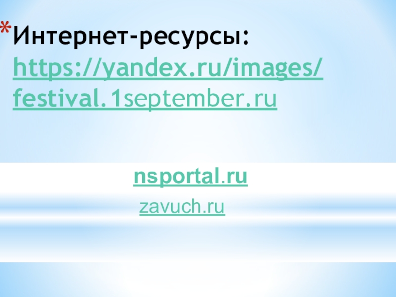 Интернет-ресурсы: https://yandex.ru/images/ festival.1september.runsportal.ruzavuch.ru