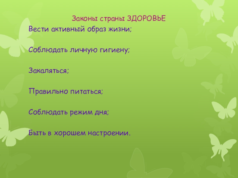 Слайд 13Законы страны ЗДОРОВЬЕ