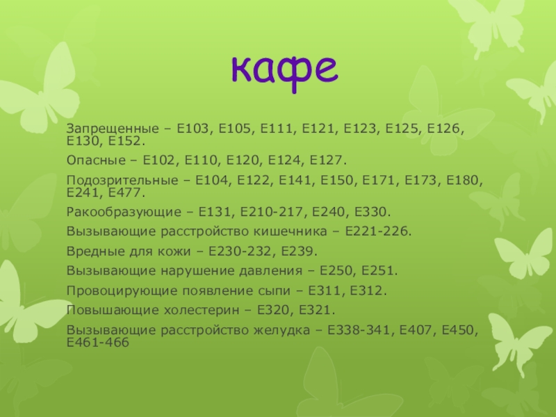 Подозрительные – Е104, Е122, Е141, Е150, Е171, Е173, Е180, Е241, Е477.