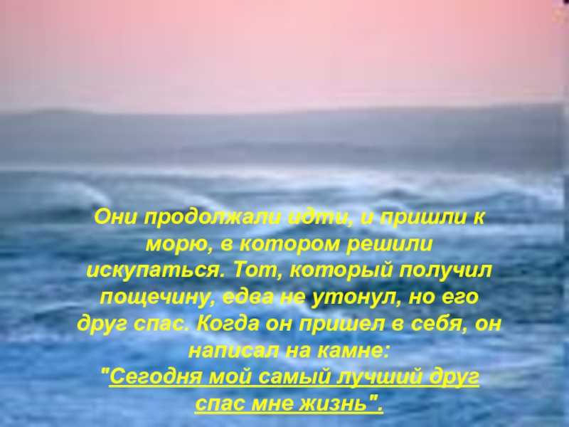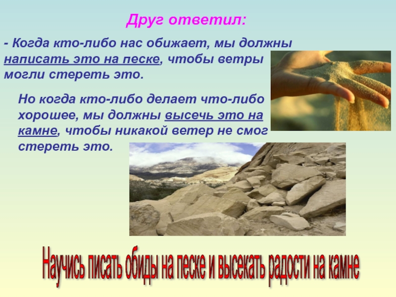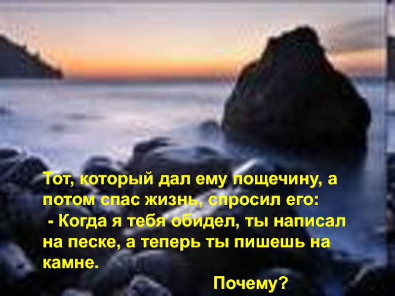 - Когда кто-либо нас обижает, мы должны написать это на песке, чтобы ветры могли стереть это.