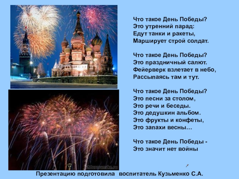 Презентацию подготовила воспитатель Кузьменко С.А.