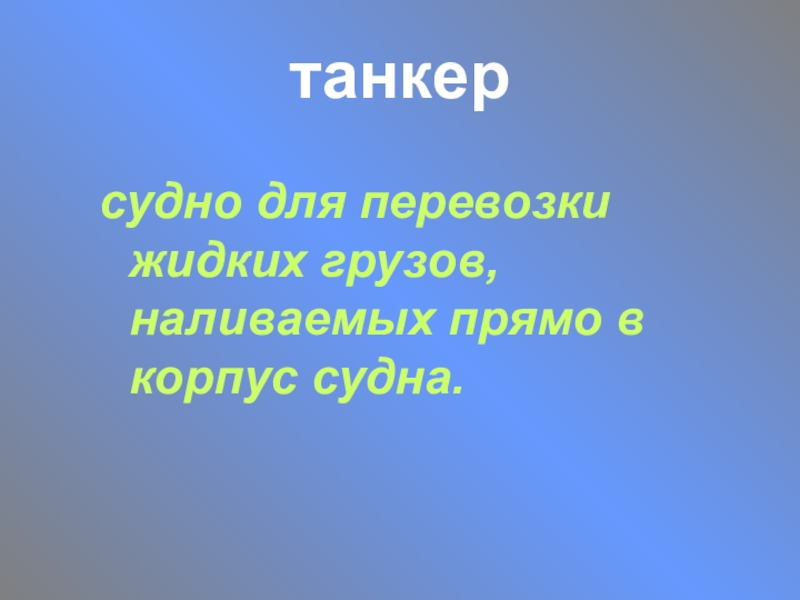 танкерсудно для перевозки жидких грузов, наливаемых прямо в корпус судна.
