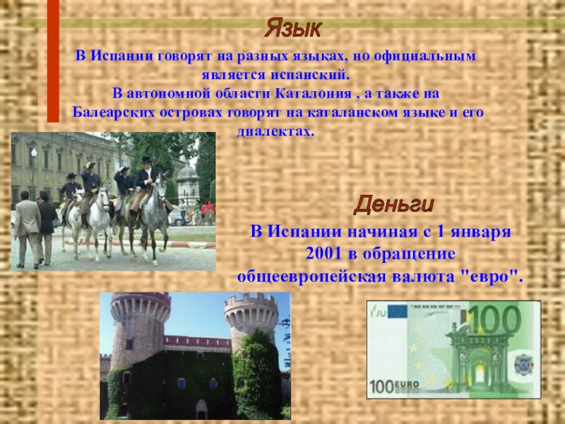 В Испании начиная с 1 января 2001 в обращение общеевропейская валюта "евро".