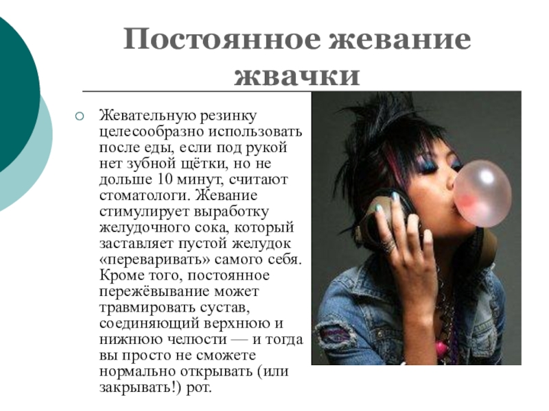 Слайд 6Постоянное жевание жвачки