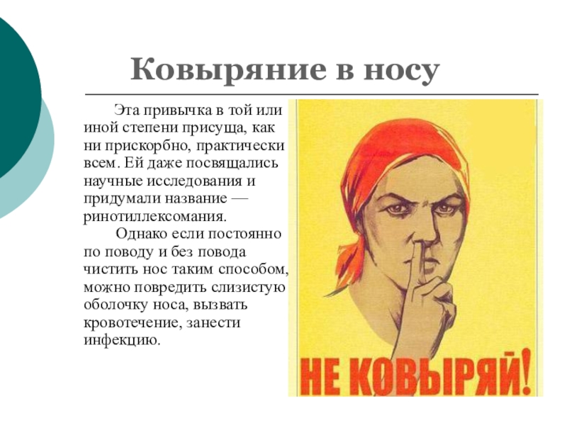 Слайд 4 Ковыряние в носу