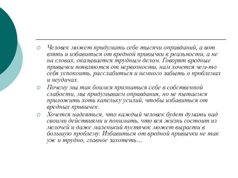 Слайд 11Человек может придумать себе тысячи оправданий, а вот взять и избавиться