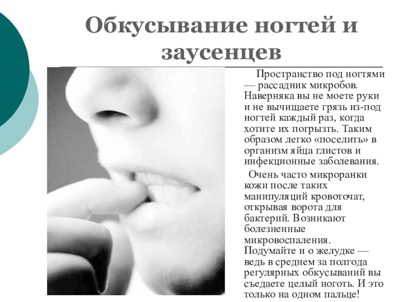 Слайд 9Обкусывание ногтей и заусенцев