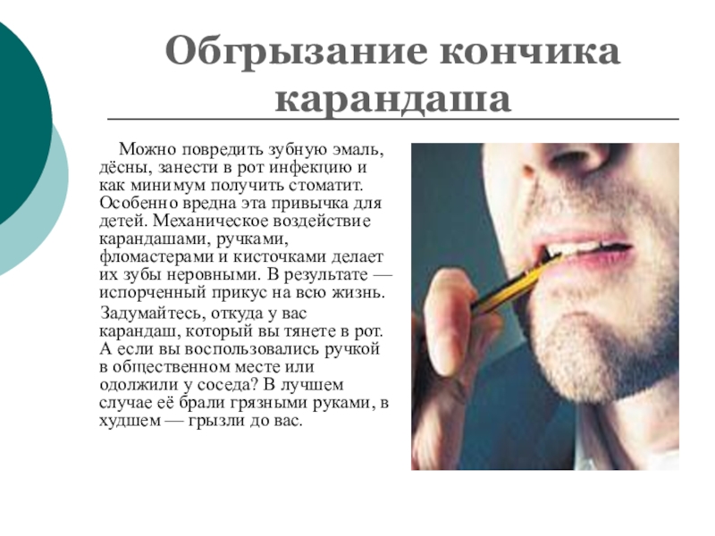 Слайд 10Обгрызание кончика карандаша