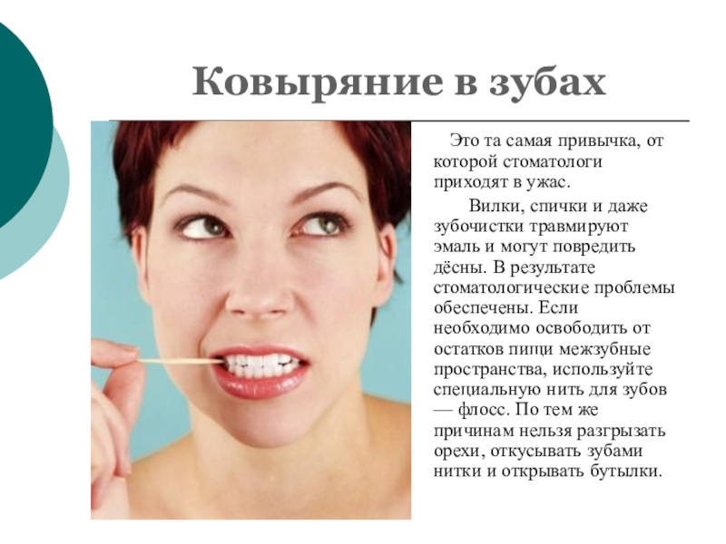 Слайд 5Ковыряние в зубах