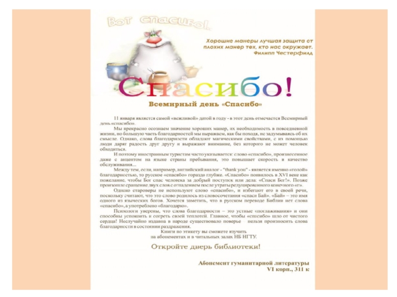 Презентация к классному часу Всемирный День Спасибо! Детские презентации