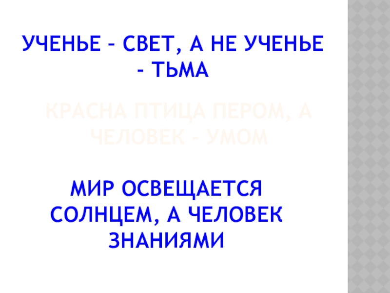 МИР ОСВЕЩАЕТСЯ СОЛНЦЕМ, А ЧЕЛОВЕК ЗНАНИЯМИ