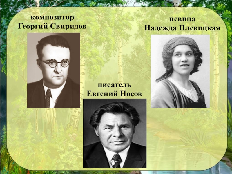 композитор Георгий Свиридовпевица Надежда Плевицкая писатель Евгений Носов