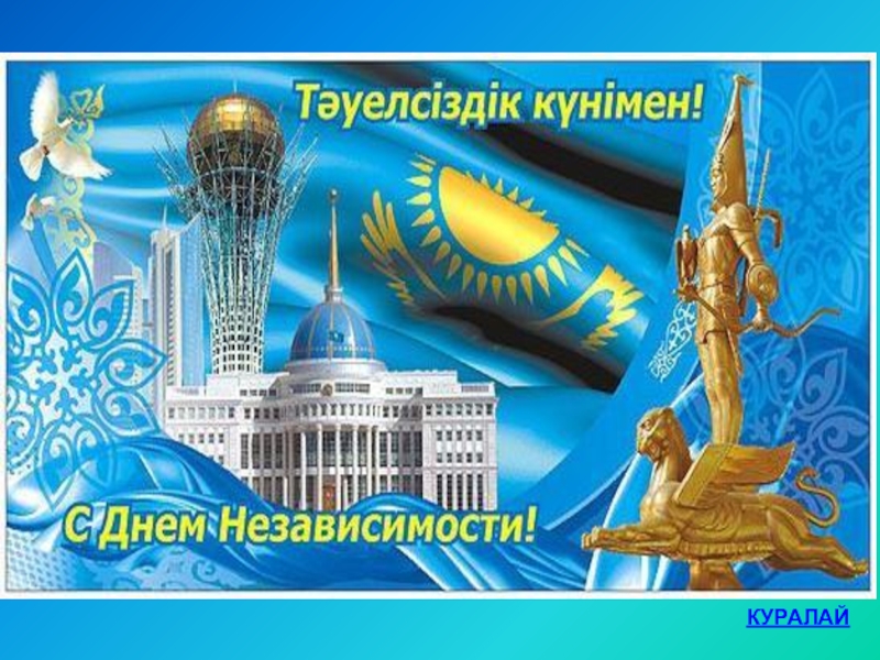 Наши знания – Независимость Наша цель – мир и благоденствие В этом мире есть лишь одна Родина Это – Казахстан! (Н.А.Назарбаев)