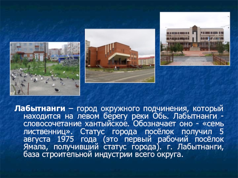 Слайд 9Лабытнанги – город окружного подчинения, который находится на левом берегу реки