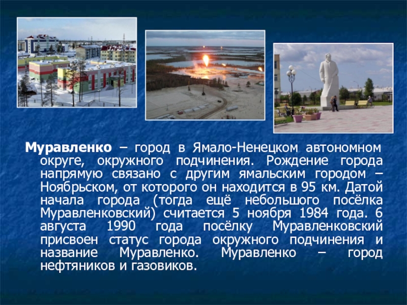 Слайд 11Муравленко – город в Ямало-Ненецком автономном округе, окружного подчинения. Рождение города