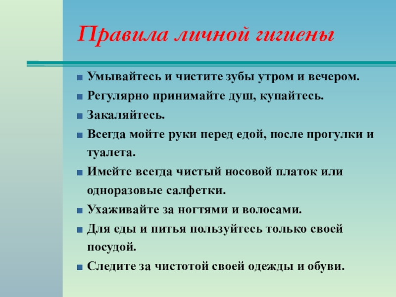 Имейте всегда чистый носовой платок или одноразовые салфетки.