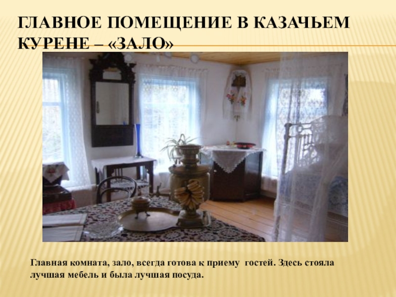 Главное помещение в казачьем курене – «зало»