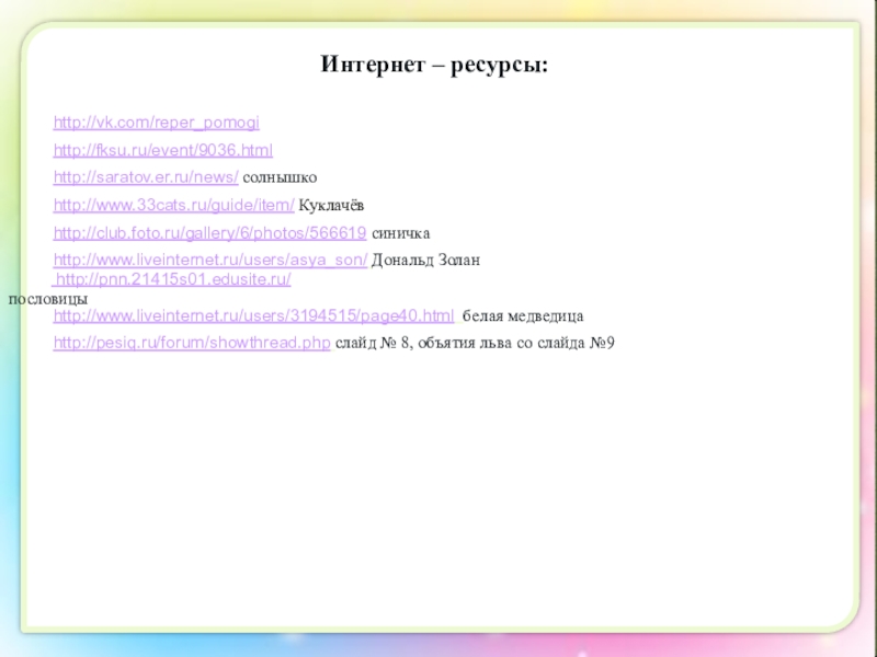 http://pesiq.ru/forum/showthread.php слайд № 8, объятия льва со слайда №9