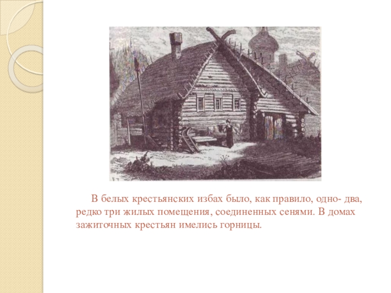 Слайд 10В белых крестьянских избах было, как правило, одно- два, редко три