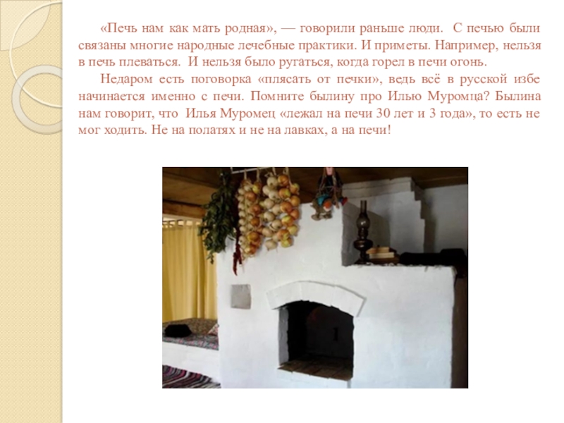 Слайд 14«Печь нам как мать родная», — говорили раньше люди. С печью