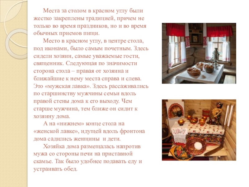 Слайд 18Места за столом в красном углу были жестко закреплены традицией, причем