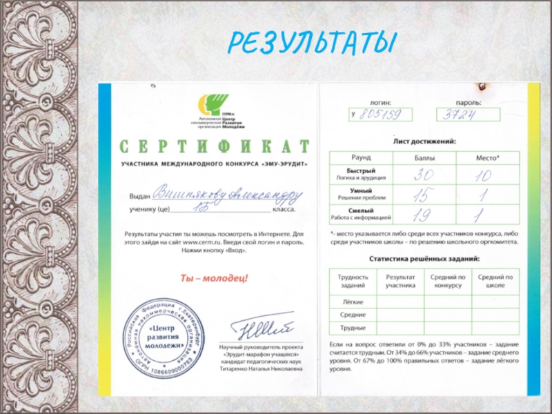 мониторинговом конкрсе ЭМУ - ЭРУДИТ