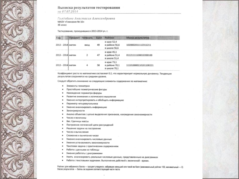 Школе предоставляется аналитическая информация об уровне сформированности метапредметных результатов.