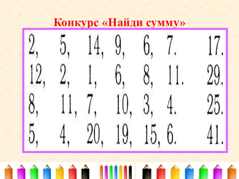 Слайд 20Конкурс «Найди сумму»