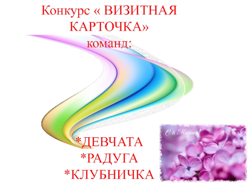 Слайд 4Конкурс « ВИЗИТНАЯ КАРТОЧКА» команд: *ДЕВЧАТА *РАДУГА *КЛУБНИЧКА