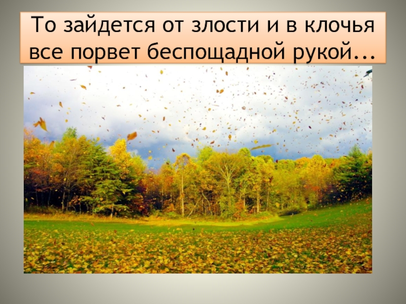 Слайд 6То зайдется от злости и в клочья все порвет беспощадной рукой...